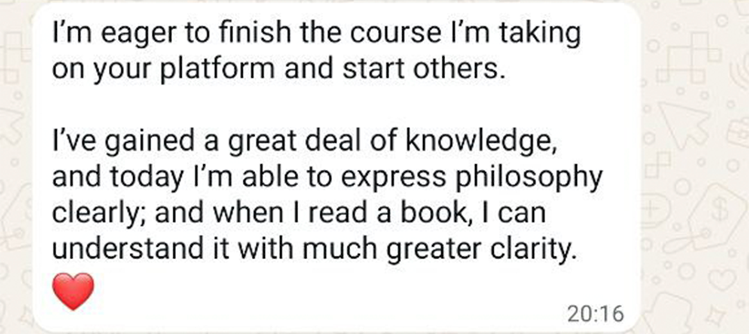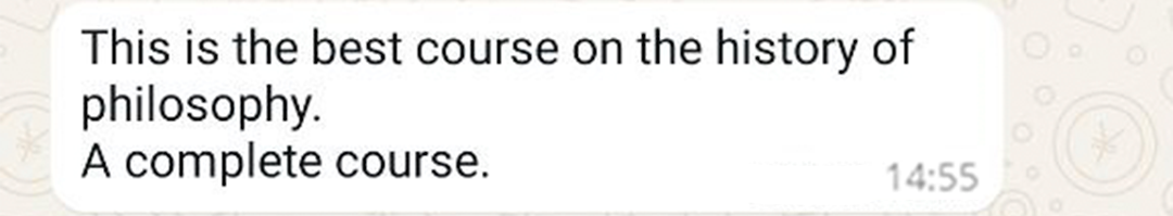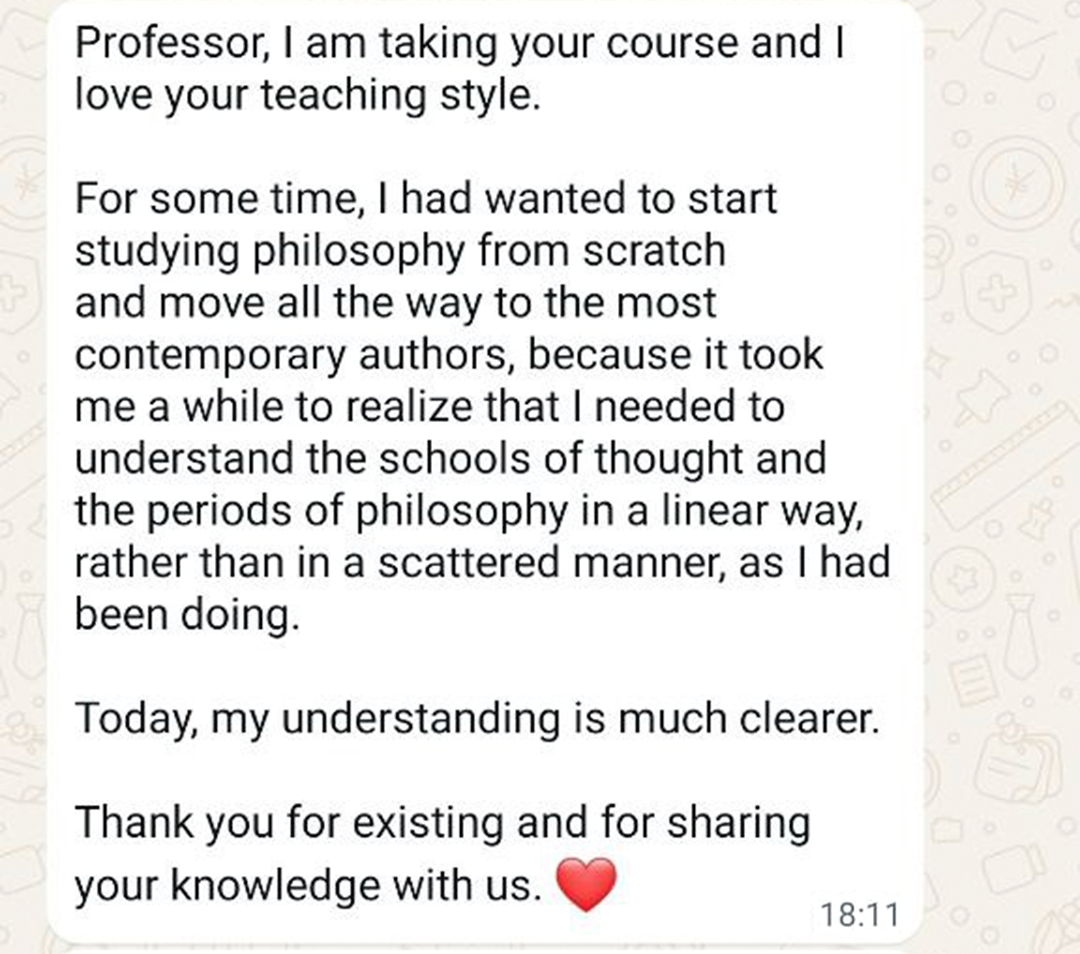 “I decided to take the course because it allows me to appreciate Philosophy calmly and at my own pace, organizing my studies without sacrificing my autonomy.”